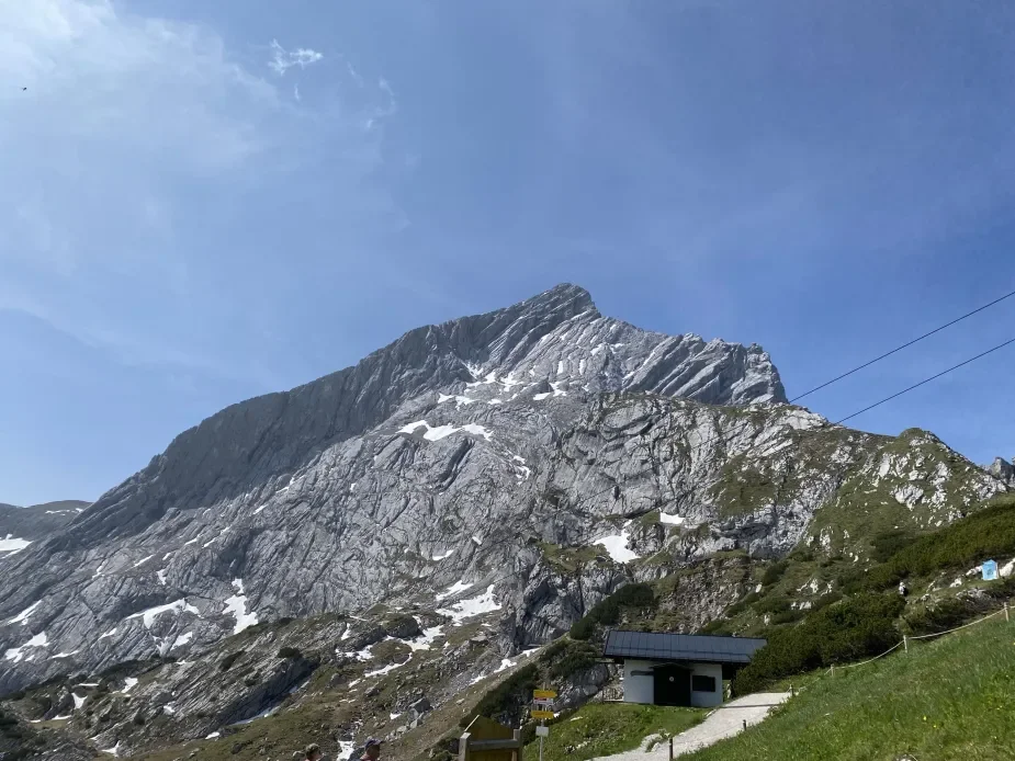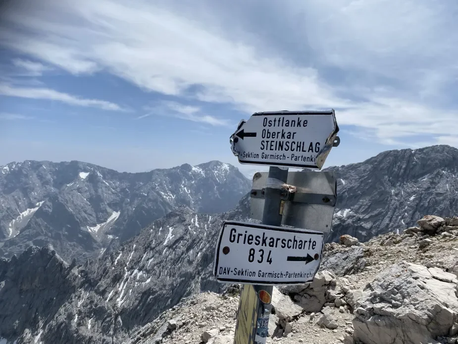 Att se en bergstopp som tornar upp sig högt över molnen och fyllas av ett djupt begär att klättra upp och överkomma bergets faror är en av de mänskligaste känslorna som finns. Här är en bild från toppen av Alpspitze i Tyska alperna. 2628möh.