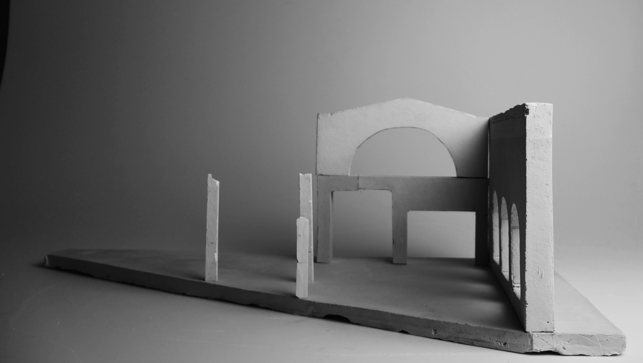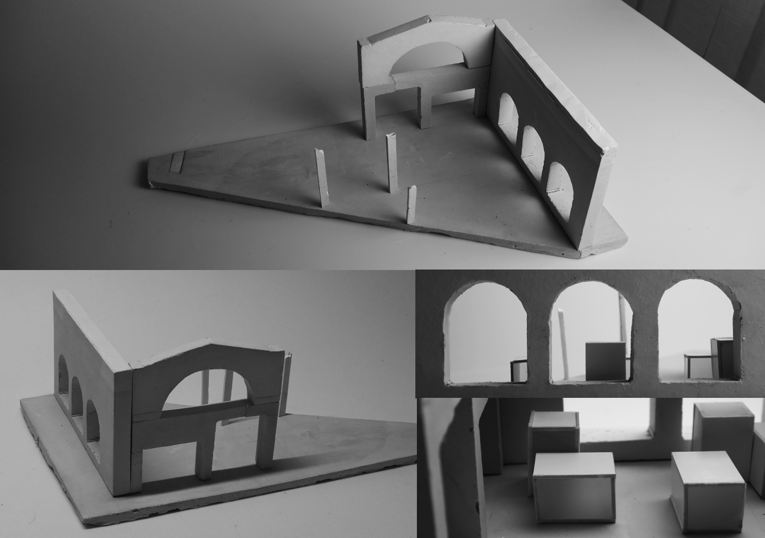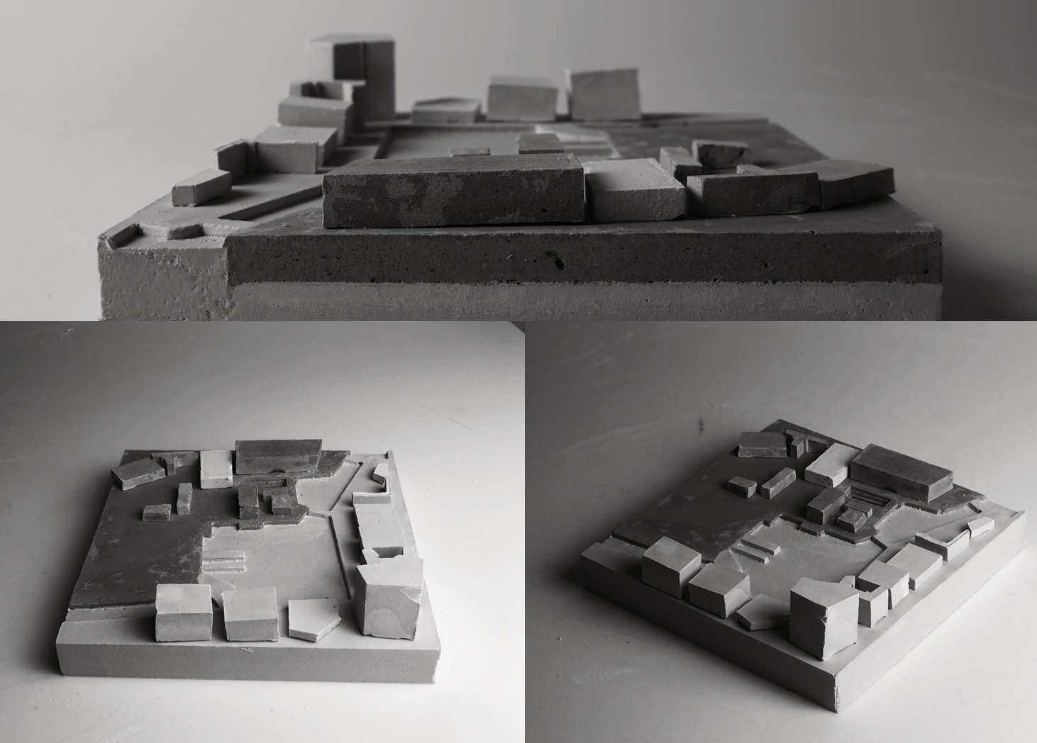 Modeller på hallen och moduler, samt modell på västra hamnsområdet. Gjutet i betong